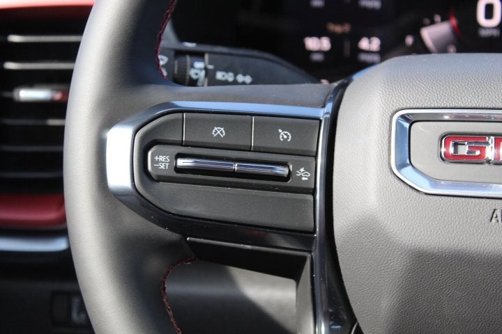 Equipped with AT4 Premium Package (6-Way Power Passenger Seat Adjuster, Driver & Front Passenger Ventilated Seats, Driver Memory, Driver Seatback Map Pocket, Heated Steering Wheel, Perforated Leather-Appointed Seat Trim, Power Passenger Lumbar Control Seat Adjuster, Rear Center Fold-Down Armrest w/2 Cupholders, and Wireless Phone Charging), AT4X Package (1st & 2nd Rows All-Weather Floor Liners (LPO), Black Finish Sport Upper Bodyside Moldings, Black Off-Road Rocker Protection (LPO), Driver-Selectable Full-Locking Front Differential, Driver-Selectable Full-Locking Rear Differential, Front Side Laminated Solar Glazing Glass, Red Seat Belt Color, Safety Alert Seat, Spray-On Bedliner w/GMC Logo, Trailering App System, Underbody Cameras, and Wheels: 17 x 8 Black High Gloss Machined Finish), Canyon Safety Plus Package (Rear Cross Traffic Braking), Technology Plus Package (Adaptive Cruise Control, HD Surround Vision, Laminated Windshield Acoustic Glass, Multicolor 6.3 Diagonal Head-Up Display, Power Inner Sliding Glass Sunroof w/Manual Shade, Premium 7-Speaker Bose Sound System, and Rear Pedestrian Alert), Trailering Package (Integrated Trailer Brake Controller), 4WD, 120-Volt Bed Mounted Power Outlet, 2 1st Row USB Charge/Data Ports, 2 Rear USB Ports in Center Console (Charge-Only), 3.42 Rear Axle Ratio, 4-Way Manual Front Passenger Seat Adjuster, 4-Wheel Disc Brakes, 6 Speakers, 6-Speaker Audio System Feature, 8-Way Power Driver Seat Adjuster, ABS brakes, Air Conditioning, Alloy wheels, AM/FM radio, Apple CarPlay/Android Auto, Auto High-beam Headlights, Auto-dimming Rear-View mirror, Automatic Emergency Braking, Automatic Stop/Start, Automatic temperature control, Brake assist, Bumpers: body-color, Canyon Pro Safety, Cloth/CoreTec Seat Trim, Compass, Delay-off headlights, Driver & Front Passenger Illuminated Visors, Driver door bin, Driver Mode Selector, Driver vanity mirror, Dual front impact airbags, Dual front side impact airbags, Dual-Zone Auto Climate Control Air Conditioning, Electronic Stability Control, Emergency communication system: OnStar, EZ-Lift & Lower Tailgate, Following Distance Indicator, Forward Collision Alert, Front anti-roll bar, Front Bucket Seats, Front Center Armrest, Front dual zone A/C, Front fog lights, Front LED Fog Lamps, Front Passenger Seatback Map Pocket, Front Pedestrian & Bicyclist Braking, Front reading lights, Front wheel independent suspension, Heated door mirrors, Heated Driver & Front Passenger Seats, Heated front seats, Illuminated entry, Inside Rear-View Auto-Dimming Mirror, IntelliBeam Automatic High Beam On/Off, Interior Overhead Courtesy Light w/Dual Reading Lamp, Lane Keep Assist w/Lane Departure Warning, Low tire pressure warning, Multimatic Jounce Control Dampers (LPO), MultiStow Tailgate Storage Compartment, Navigation System, Occupant sensing airbag, Off-Road Suspension, Outside temperature display, Overhead airbag, Overhead console, Panic alarm, Passenger door bin, Passenger vanity mirror, Power door mirrors, Power Driver Lumbar Control Seat Adjuster, Power driver seat, Power steering, Power windows, Radio data system, Radio: 11.3 Diagonal Premium GMC Infotainment Sys, Rear of Console 120-Volt Power Outlet, Rear reading lights, Rear step bumper, Rear window defroster, Remote keyless entry, Remote Vehicle Starter System, Security system, SiriusXM w/360L, Speed control, Speed-sensing steering, Split folding rear seat, Steering wheel mounted audio controls, Stop/Start System Disable Button Engine Control, Tachometer, Tailgate Keyed Cylinder Lock, Telescoping steering wheel, Tilt & Telescopic Manual Steering Column, Tilt steering wheel, Traction control, Trip computer, Variably intermittent wipers, Wheels: 18 x 8.5 Dark Gray Machined Finish Alum, and Wireless Apple CarPlay/Wireless Android Auto.