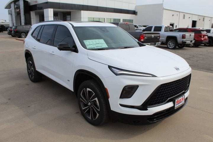 Equipped with Power Package (110-Volt Power Outlet, 2nd Row 1-Touch Flat Folding Seat, 3rd Row 60/40 Power Split-Folding Bench Seat, Head-Up Display, Heated Wiper Park, Inside Rearview Auo-Dimming Rear Camera Mirror, Memory Settings, and Universal Home Remote), FWD, 12 Speakers, 3rd row seats: split-bench, 4-Wheel Disc Brakes, ABS brakes, Air Conditioning, Alloy wheels, AM/FM radio: SiriusXM with 360L, Apple CarPlay/Android Auto, Auto High-beam Headlights, Auto-dimming door mirrors, Auto-dimming Rear-View mirror, Automatic temperature control, Bose Premium 12-Speaker Audio System with Subwoofer, Brake assist, Bumpers: body-color, Compass, Delay-off headlights, Driver 4-Way Power Lumbar Seat Adjuster, Driver 8-Way Power Seat Adjuster, Driver door bin, Driver vanity mirror, Dual front impact airbags, Dual front side impact airbags, Electronic Stability Control, Emergency communication system: OnStar and Buick connected services capable, Four wheel independent suspension, Front anti-roll bar, Front Bucket Seats, Front Center Armrest, Front dual zone A/C, Front Passenger 4-Way Power Lumbar Seat Adjuster, Front Passenger 6-Way Power Seat Adjuster, Front reading lights, Fully automatic headlights, Heated door mirrors, Heated Driver and Front Passenger Seats, Heated front seats, Heated steering wheel, Illuminated entry, Leather steering wheel, Low tire pressure warning, Navigation System, Occupant sensing airbag, Outside temperature display, Overhead airbag, Overhead console, Panic alarm, Passenger door bin, Passenger vanity mirror, Perforated Leatherette Seat Trim, Power door mirrors, Power driver seat, Power Liftgate, Power Panoramic Sunroof with Sunshade, Power passenger seat, Power steering, Power windows, Premium audio system: Buick Infotainment System, Radio data system, Radio: Infotainment Center, Rear air conditioning, Rear anti-roll bar, Rear reading lights, Rear side impact airbag, Rear window defroster, Rear window wiper, Remote keyless entry, Security system, SiriusXM with 360L Trial Subscription, Speed control, Speed-sensing steering, Spoiler, Sport steering wheel, Steering wheel mounted audio controls, Tachometer, Telescoping steering wheel, Tilt steering wheel, Traction control, Trip computer, Turn signal indicator mirrors, Variably intermittent wipers, Voltmeter, Wheels: 20 Alloy with High Gloss Black and Machine Finish, Wireless Apple CarPlay, and Wireless Google Android Auto. Price includes all applicable rebates. See dealer for details. Price includes: $2500 - Buick GMC Bonus Cash. Exp. 03/02/2026 $500 - Buick & GMC Consumer Cash Program. Exp. 03/02/2026