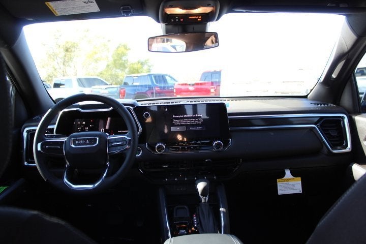 Equipped with Canyon Safety Plus Package (Rear Cross Traffic Braking and Ultrasonic Rear Park Assist), 1 Rear USB Port in Center Console (Charge-Only), 2 1st Row USB Charge/Data Ports, 3.42 Rear Axle Ratio, 4-Way Manual Front Passenger Seat Adjuster, 4-Wheel Disc Brakes, 6 Speakers, 6-Speaker Audio System Feature, 6-Way Manual Driver Seat Adjuster, ABS brakes, Air Conditioning, Alloy wheels, AM/FM radio, Apple CarPlay/Android Auto, Auto High-beam Headlights, Automatic Emergency Braking, Automatic Stop/Start, Brake assist, Bumpers: body-color, Canyon Pro Safety, Cloth Seat Trim, Compass, Delay-off headlights, Driver door bin, Driver vanity mirror, Dual front impact airbags, Dual front side impact airbags, Electronic Stability Control, Emergency communication system: OnStar, Following Distance Indicator, Forward Collision Alert, Front anti-roll bar, Front Bucket Seats, Front Center Armrest, Front Passenger Seatback Map Pocket, Front wheel independent suspension, Heated door mirrors, Illuminated entry, Low tire pressure warning, Navigation System, Occupant sensing airbag, Off-Road Suspension, Outside temperature display, Overhead airbag, Overhead console, Panic alarm, Passenger door bin, Passenger vanity mirror, Power door mirrors, Power steering, Power windows, Radio data system, Rear reading lights, Rear step bumper, Rear window defroster, Remote keyless entry, Security system, Speed control, Speed-sensing steering, Split folding rear seat, Steering wheel mounted audio controls, Stop/Start System Disable Button Engine Control, Tachometer, Tilt steering wheel, Traction control, Trip computer, Variably intermittent wipers, Wheels: 18 x 8.5 Gloss Black Finish Aluminum, and Wireless Apple CarPlay/Wireless Android Auto.