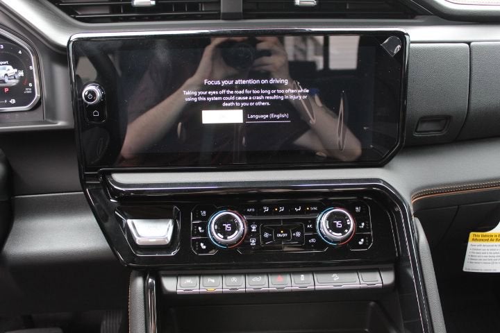 Equipped with AT4 Preferred Package (Power Sliding Rear Window with Rear Defogger and Universal Home Remote), AT4 Premium Package (Off-Road High Clearance Step), Technology Package (Bed View Camera, Multicolor 15 Diagonal Head-Up Display, and Rear Camera Mirror), Trailering Package (Hitch Guidance), 10-Speed Automatic, 4WD, Jet Black With Kalahari Accents Leather, 10-Way Power Driver Seat Adjuster with Lumbar, 10-Way Power Passenger Seat Adjuster with Lumbar, 120-Volt Bed Mounted Power Outlet, 120-Volt Interior Power Outlet, 2 Charge/Data USB Ports Inside Center Console, 2 Type-C Charge-Only Rear USB Ports, 2 USB Ports, 220 Amp Alternator, 3.23 Rear Axle Ratio, 4-Wheel Disc Brakes, 7 Speakers, ABS brakes, Air Conditioning, All-Weather Floor Liners with AT4 Logo, Alloy wheels, AM/FM radio: SiriusXM with 360L, Apple CarPlay/Android Auto, Auto High-beam Headlights, Auto-dimming door mirrors, Auto-dimming Rear-View mirror, Auto-Locking Rear Differential, Automatic Emergency Braking, Automatic temperature control, Black Chrome Grille Insert Bars, Block heater, Brake assist, Buckle to Drive, Bumpers: body-color, Color-Keyed Carpeting Floor Covering, Compass, Deep-Tinted Glass, Delay-off headlights, Driver door bin, Driver Memory, Driver vanity mirror, Dual Active Exhaust, Dual front impact airbags, Dual front side impact airbags, Electric Rear-Window Defogger, Electronic Stability Control, Emergency communication system: OnStar, Floor-Mounted Center Console, Following Distance Indicator, Forward Collision Alert, Front anti-roll bar, Front Bucket Seats, Front Center Armrest, Front dual zone A/C, Front fog lights, Front Pedestrian Braking, Front Premium Floor Liners with Removable Carpet Insert, Front Rain-Sensing Wipers, Front reading lights, Front wheel independent suspension, Fully automatic headlights, HD Surround Vision, Heated 2nd Row Outboard Seats, Heated door mirrors, Heated Driver and Front Outboard Passenger Seating, Heated front seats, Heated rear seats, Heated steering wheel, Heavy-Duty Air Filter, Hill Descent Control, Hitch View, Illuminated entry, in-Vehicle Trailering System App, Integrated Trailer Brake Controller, IntelliBeam Automatic High Beam on/Off, Keyless Open and Start, Lane Keep Assist with Lane Departure Warning, LED Cargo Area Lighting, Low tire pressure warning, Memory seat, Navigation System, Occupant sensing airbag, Off-Road Suspension, OnStar Services Capable, Outside temperature display, Overhead airbag, Overhead console, Panic alarm, Passenger door bin, Passenger vanity mirror, Perforated Front Leather Seat Trim, Perimeter Lighting, Power Door Locks, Power door mirrors, Power driver seat, Power Front Passenger Windows with Express Up/Down, Power Front Windows with Driver Express Up/Down, Power passenger seat, Power Rake and Telescoping Steering Column, Power Rear Windows with Express Down, Power steering, Power Sunroof, Power windows, Premium Bose 7-Speaker Sound System, Push Button Start, Radio data system, Radio: Premium GMC Infotainment Audio System, Rain sensing wipers, Rear Cross Traffic Braking, Rear Pedestrian Detection, Rear Premium Floor Liners with Removable Carpet Insert, Rear reading lights, Rear seat center armrest, Rear step bumper, Rear Wheelhouse Liners, Rear window defroster, Red Recovery Hooks, Remote keyless entry, Remote Vehicle Starter System, Safety Alert Seat, Security system, SiriusXM with 360L Trial Subscription, Speed control, Speed-sensing steering, Split folding rear seat, Spray-on Pickup Bedliner with GMC Logo, Steering Wheel Audio Controls, Steering wheel mounted audio controls, Tachometer, Telescoping steering wheel, Theft Deterrent System (una Price includes all applicable rebates. See dealer for details. Price includes: $1750 - Buick & GMC Consumer Cash Program. Exp.