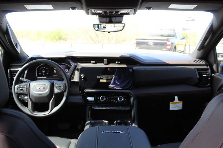 Equipped with AT4 Preferred Package (LED Smoked Amber Roof Marker Lamps and Universal Home Remote), AT4 Premium Plus Package, Gooseneck/5th Wheel Prep Package, Hitch Package, X31 Off-Road Package (Hill Descent Control and Off-Road Suspension), 10-Speed Automatic, 4WD, Jet Black With Kalahari Accents Leather, 10-Way Power Driver Seat Adjuster with Lumbar, 10-Way Power Passenger Seat Adjuster with Lumbar, 120-Volt Bed Mounted Power Outlet, 120-Volt Instrument Panel Power Outlet, 1st and 2nd Rows All-Weather Floor Liners, 2 Charge-Only Rear USB Ports, 2 Charge/Data USB Ports Inside Center Console, 2 USB Ports, 2-Speed Active Transfer Case, 4-Wheel Disc Brakes, 7 Speakers, ABS brakes, Air Conditioning, Alloy wheels, AM/FM radio: SiriusXM with 360L, Apple CarPlay/Android Auto, Auto High-beam Headlights, Auto-dimming door mirrors, Auto-dimming Rear-View mirror, Automatic Emergency Braking, Automatic temperature control, Bed View Camera with Two Trailer Camera Provisions, Bose Premium 7-Speaker Sound System, Brake assist, Buckle to Drive, Bumpers: body-color, Compass, Deep-Tinted Glass, Delay-off headlights, Driver door bin, Driver Memory, Driver vanity mirror, Dual front impact airbags, Dual front side impact airbags, Electric Rear-Window Defogger, Electronic Stability Control, Emergency communication system: OnStar, Floor-Mounted Center Console, Following Distance Indicator, Forward Collision Alert, Front anti-roll bar, Front Bucket Seats, Front Center Armrest, Front dual zone A/C, Front fog lights, Front Pedestrian Braking, Front Premium Floor Liners with Removable Carpet Insert, Front Rain-Sensing Wipers, Front reading lights, Front wheel independent suspension, Fully automatic headlights, Gloss Black Header Grille and Grille Insert Bars, HD Surround Vision, Heated 2nd Row Outboard Seats, Heated door mirrors, Heated Driver and Front Outboard Passenger Seats, Heated front seats, Heated rear seats, Heated steering wheel, Heavy-Duty 80 Amp Battery, Hitch Guidance with Hitch View, Illuminated entry, in-Vehicle Trailering System App, IntelliBeam Automatic High Beam on/Off, Keyless Open and Start, Lane Departure Warning System, LED Cargo Area Lighting, Low tire pressure warning, Manual Tilt-Wheel/Telescoping Steering Column, Memory seat, Occupant sensing airbag, Off-Road High Clearance Step, OnStar Services Capable, Outside temperature display, Overhead airbag, Overhead console, Panic alarm, Passenger door bin, Passenger vanity mirror, Perforated Leather-Appointed Front Seat Trim, Pickup Box, Power door mirrors, Power driver seat, Power Front Passenger Windows with Express Up/Down, Power passenger seat, Power steering, Power windows, Premium audio system: Premium GMC Infotainment System, Push Button Start, Radio: AM/FM Stereo with Premium GMC Infotainment System, Rain sensing wipers, Rear Cross Traffic Alert, Rear Premium Floor Liners with Removable Carpet Insert, Rear reading lights, Rear seat center armrest, Rear step bumper, Rear Wheelhouse Liners, Rear window defroster, Remote keyless entry, Remote Vehicle Starter System, Safety Alert Seat, Security system, SiriusXM with 360L Trial Subscription, Speed control, Speed-sensing steering, Split folding rear seat, Spray-on Pickup Bedliner with GMC Logo, Steering Wheel Audio Controls, Steering wheel mounted audio controls, Tachometer, Telescoping steering wheel, Tilt steering wheel, Traction control, Trailer Cam Provisions and Trailer Viewing Software, Trailer Side Blind Zone Alert, Trip computer, Turn signal indicator mirrors, Ultrasonic Front and Rear Park Assist, Unauthorized Entry Theft-Deterrent System, Variably intermittent wipers, Ventilated Driver and Front Passenger Seats, Ventilated f Price includes all applicable rebates. See dealer for details. Price includes: $1