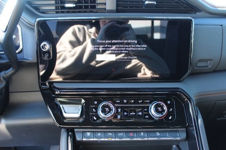 Equipped with AT4 Preferred Package (LED Smoked Amber Roof Marker Lamps and Universal Home Remote), AT4 Premium Plus Package, Gooseneck/5th Wheel Prep Package, Hitch Package, X31 Off-Road Package (Hill Descent Control and Off-Road Suspension), 10-Speed Automatic, 4WD, Jet Black With Kalahari Accents Leather, 10-Way Power Driver Seat Adjuster with Lumbar, 10-Way Power Passenger Seat Adjuster with Lumbar, 120-Volt Bed Mounted Power Outlet, 120-Volt Instrument Panel Power Outlet, 2 Charge-Only Rear USB Ports, 2 Charge/Data USB Ports Inside Center Console, 2 USB Ports, 2-Speed Active Transfer Case, 4-Wheel Disc Brakes, 7 Speakers, ABS brakes, Air Conditioning, Alloy wheels, AM/FM radio: SiriusXM with 360L, Apple CarPlay/Android Auto, Auto High-beam Headlights, Auto-dimming door mirrors, Auto-dimming Rear-View mirror, Automatic Emergency Braking, Automatic temperature control, Bed View Camera with Two Trailer Camera Provisions, Bose Premium 7-Speaker Sound System, Brake assist, Buckle to Drive, Bumpers: body-color, Compass, Deep-Tinted Glass, Delay-off headlights, Driver door bin, Driver Memory, Driver vanity mirror, Dual front impact airbags, Dual front side impact airbags, Electric Rear-Window Defogger, Electronic Stability Control, Emergency communication system: OnStar, Floor-Mounted Center Console, Following Distance Indicator, Forward Collision Alert, Front anti-roll bar, Front Bucket Seats, Front Center Armrest, Front dual zone A/C, Front fog lights, Front Pedestrian Braking, Front Premium Floor Liners with Removable Carpet Insert, Front Rain-Sensing Wipers, Front reading lights, Front wheel independent suspension, Fully automatic headlights, Gloss Black Header Grille and Grille Insert Bars, HD Surround Vision, Heated 2nd Row Outboard Seats, Heated door mirrors, Heated Driver and Front Outboard Passenger Seats, Heated front seats, Heated rear seats, Heated steering wheel, Heavy-Duty 80 Amp Battery, Hitch Guidance with Hitch View, Illuminated entry, in-Vehicle Trailering System App, IntelliBeam Automatic High Beam on/Off, Keyless Open and Start, Lane Departure Warning System, LED Cargo Area Lighting, Low tire pressure warning, Manual Tilt-Wheel/Telescoping Steering Column, Memory seat, Occupant sensing airbag, Off-Road High Clearance Step, OnStar Services Capable, Outside temperature display, Overhead airbag, Overhead console, Panic alarm, Passenger door bin, Passenger vanity mirror, Perforated Leather-Appointed Front Seat Trim, Pickup Box, Power door mirrors, Power driver seat, Power Front Passenger Windows with Express Up/Down, Power passenger seat, Power steering, Power windows, Premium audio system: Premium GMC Infotainment System, Push Button Start, Radio: AM/FM Stereo with Premium GMC Infotainment System, Rain sensing wipers, Rear Cross Traffic Alert, Rear Premium Floor Liners with Removable Carpet Insert, Rear reading lights, Rear seat center armrest, Rear step bumper, Rear Wheelhouse Liners, Rear window defroster, Remote keyless entry, Remote Vehicle Starter System, Safety Alert Seat, Security system, SiriusXM with 360L Trial Subscription, Speed control, Speed-sensing steering, Split folding rear seat, Spray-on Pickup Bedliner with GMC Logo, Steering Wheel Audio Controls, Steering wheel mounted audio controls, Tachometer, Telescoping steering wheel, Tilt steering wheel, Traction control, Trailer Cam Provisions and Trailer Viewing Software, Trailer Side Blind Zone Alert, Trip computer, Turn signal indicator mirrors, Ultrasonic Front and Rear Park Assist, Unauthorized Entry Theft-Deterrent System, Variably intermittent wipers, Ventilated Driver and Front Passenger Seats, Ventilated front seats, Voltmeter, Price includes all applicable rebates. See dealer for details. Price includes