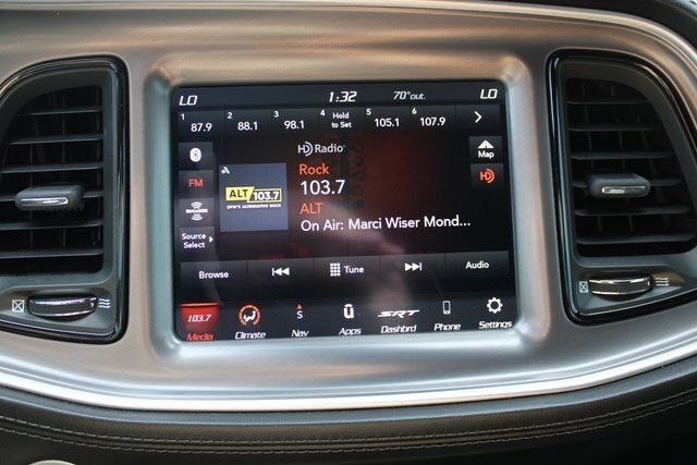 EQUIPPED WITH Driver Convenience Group (Blind Spot & Cross Path Detection, High-Intensity Discharge Headlamps, and Power Multi-Function Foldaway Mirrors), Plus Package (Door Trim Panel w/Ambient Lighting and Premium-Stitched Dash Panel), Quick Order Package 23N R/T Scat Pack Widebody (Adaptive Damping Suspension, Brembo 6-Pot Fixed Front Caliper Brakes, Leather Flat-Bottom Steering Wheel, Performance Shift Indicator, Wheels: 20 x 11.0 Devil's Rim Aluminum, Widebody Competition Suspension, and Widebody Fender Flares), 1-Yr SiriusXM Guardian Trial, 230MM Rear Axle, 4-Wheel Disc Brakes, 4G LTE Wi-Fi Hot Spot, 5-Year SiriusXM Traffic Service, 5-Year SiriusXM Travel Link Service, 6 Speakers, 8.4 Touchscreen Display, ABS brakes, Air Conditioning, Alloy wheels, AM/FM radio: SiriusXM, Anti-whiplash front head restraints, Apple CarPlay, Apple CarPlay/Android Auto, Auto-dimming Rear-View mirror, Automatic temperature control, Black Fuel Filler Door, Black Grille w/Bezel, Brake assist, Bumpers: body-color, Compass, Delay-off headlights, Driver door bin, Driver vanity mirror, Dual front impact airbags, Dual front side impact airbags, Electronic Stability Control, Emergency communication system: SiriusXM Guardian, For Details, Visit DriveUconnect.com, Four wheel independent suspension, Front anti-roll bar, Front Bucket Seats, Front Center Armrest, Front dual zone A/C, Front fog lights, Front License Plate Bracket, Front reading lights, Fully automatic headlights, Garage door transmitter, Google Android Auto, GPS Antenna Input, GPS Navigation, HD Radio, Heated door mirrors, Heated front seats, Heated steering wheel, Illuminated entry, Integrated Center Stack Radio, Integrated Voice Command w/Bluetooth®, Leather Shift Knob, Low tire pressure warning, Media Hub (2 USB, AUX), Outside temperature display, Overhead airbag, Overhead console, Panic alarm, ParkView Rear Back-Up Camera, Passenger door bin, Passenger vanity mirror, Power door mirrors, Power driver seat, Power steering, Power windows, Radio data system, Radio: Uconnect 4C Nav w/8.4 Display, Radio: Uconnect 4C w/8.4 Display, Rear anti-roll bar, Rear reading lights, Rear seat center armrest, Rear window defroster, Remote keyless entry, Rhombi 2-Pc Wheel Center Cap, Scat Pack Logo Houndstooth Seat, Security system, SiriusXM Satellite Radio, SiriusXM Traffic Plus, SiriusXM Travel Link, Speed control, Speed-sensing steering, Split folding rear seat, Spoiler, Sport steering wheel, Steering wheel mounted audio controls, Tachometer, Telescoping steering wheel, Tilt steering wheel, Traction control, Trip computer, USB Host Flip, Variably intermittent wipers, and Wheels: 20 x 9 Lo Gloss Granite CrystaL.