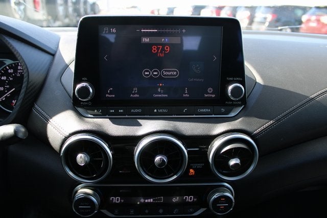 EQUIPPED WITH CVT with Xtronic, Charcoal Cloth, 16 Alloy Wheels, 4-Wheel Disc Brakes, 6 Speakers, 6-Speaker Audio System, ABS brakes, Air Conditioning, Alloy wheels, AM/FM radio: SiriusXM, Auto High-beam Headlights, Automatic temperature control, Blind Spot Warning, Body Colored Splash Guards (4-Piece), Brake assist, Bumpers: body-color, Carpeted Floor Mats w/Trunk Mat, Clear Rear Bumper Protector, Delay-off headlights, Driver door bin, Driver vanity mirror, Dual front impact airbags, Dual front side impact airbags, Electronic Stability Control, Four wheel independent suspension, Front anti-roll bar, Front Bucket Seats, Front Center Armrest, Front dual zone A/C, Front reading lights, Fully automatic headlights, Heated door mirrors, Illuminated entry, Knee airbag, Low tire pressure warning, NissanConnect featuring Apple CarPlay and Android Auto, Occupant sensing airbag, Outside temperature display, Overhead airbag, Overhead console, Panic alarm, Passenger door bin, Passenger vanity mirror, Power door mirrors, Power steering, Power windows, Radio data system, Radio: AM/FM w/RDS/MP3/Aux-In, Rear anti-roll bar, Rear Parking Sensors, Rear seat center armrest, Rear side impact airbag, Rear Spoiler, Rear window defroster, Remote keyless entry, Security system, Speed control, Speed-sensing steering, Split folding rear seat, Steering wheel mounted audio controls, Tachometer, Telescoping steering wheel, Tilt steering wheel, Traction control, Trip computer, Turn signal indicator mirrors, Upgraded Cloth Seat Trim, and Variably intermittent wipers.