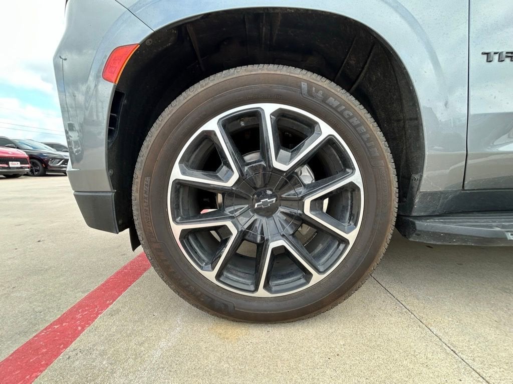 Equipped with Driver Alert Package (Lane Change Alert w/Side Blind Zone Alert and Rear Cross Traffic Alert), License Plate Front Mounting Package, Luxury Package (2nd Row Pwr Release 60/40 Split-Folding Bench Seat, 3rd Row 60/40 Power-Folding Split-Bench Seat, HD Surround Vision, Heated 2nd Row Outboard Seats, Heated Steering Wheel, Memory Settings, Outside Heated Power-Adjustable Mirrors, Power Tilt & Telescopic Steering Column, and Rear Pedestrian Alert), Preferred Equipment Group 1SP (1st & 2nd Row Color-Keyed Carpeted Floor Mats, Auto-Dimming Inside Rear-View Mirror, Automatic Stop/Start, Bose 9-Speaker Stereo Audio System Feature, Bright Front & Rear Door Sill Plates, Color-Keyed Carpeting Floor Covering, Driver & Front Outboard Passenger Airbags, Enhanced Driver Information Center, Floor Console w/Storage Area, Hands-Free Rear Power Programmable Liftgate, Infotainment Display, Leather-Wrapped Steering Wheel, LED Daytime Running Lamps, Memory Settings for Driver, Remote Start, SiriusXM Radio w/360L, Start/Stop System Disable Button, Universal Home Remote, and Wireless Charging), Jet Black/Victory Red Leather, 10-Way Power Driver & Passenger Seat Adjusters, 3.23 Rear Axle Ratio, 3rd row seats: split-bench, 4-Wheel Disc Brakes, 9 Speakers, ABS brakes, Air Conditioning, Alloy wheels, AM/FM radio: SiriusXM with 360L, Apple CarPlay/Android Auto, Auto High-beam Headlights, Auto-dimming Rear-View mirror, Automatic temperature control, Brake assist, Bumpers: body-color, Compass, Delay-off headlights, Driver door bin, Driver vanity mirror, Dual front impact airbags, Dual front side impact airbags, Dual-Pane Power Panoramic Sunroof, Electronic Stability Control, Emergency communication system: OnStar and Chevrolet connected services capable, Four wheel independent suspension, Front anti-roll bar, Front Bucket Seats, Front Center Armrest, Front dual zone A/C, Front High-Back Reclining Bucket Seats, Front reading lights, Fully automatic headlights, Garage door transmitter, Heated door mirrors, Heated Driver & Front Passenger Seats, Heated front seats, Illuminated entry, Leather steering wheel, Low tire pressure warning, Memory seat, Navigation System, Not Equipped w/Front & Rear Park Assist, Not Equipped w/Heated Rear Outboard Seats, Not Equipped w/Heated/Ventilated Front Seats, Not Equipped w/Steering Column Lock, Occupant sensing airbag, Outside temperature display, Overhead airbag, Overhead console, Panic alarm, Passenger door bin, Passenger vanity mirror, Perforated Leather Seat Trim, Power door mirrors, Power driver seat, Power Liftgate, Power passenger seat, Power Release 2nd Row Bucket Seats, Power steering, Power windows, Premium audio system: Chevrolet Infotainment System 3, Premium Smooth Ride Suspension, Radio: Chevrolet Infotainment 3 Premium System, Rain sensing wipers, Rear air conditioning, Rear anti-roll bar, Rear reading lights, Rear seat center armrest, Rear window defroster, Rear window wiper, Remote keyless entry, Roof rack: rails only, Security system, Set of 4 Wheel Locks (LPO), Speed control, Speed-sensing steering, Split folding rear seat, Spoiler, Steering wheel mounted audio controls, Tachometer, Telescoping steering wheel, Tilt steering wheel, Traction control, Trip computer, Variably intermittent wipers, Voltmeter, and Wheels: 22 x 9 Bright Machined.