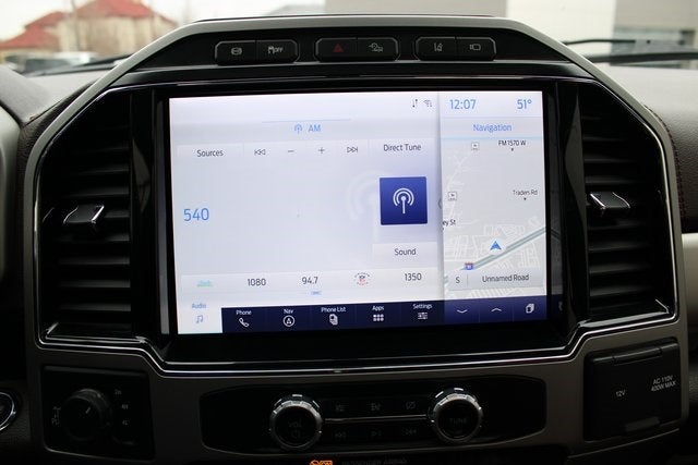 EQUIPPED WITH GVWR: 10,000 lb Payload Package, 4WD, 10 Speakers, 3.73 Axle Ratio, 4-Wheel Disc Brakes, ABS brakes, Adjustable pedals, Air Conditioning, Alloy wheels, AM/FM radio: SiriusXM with 360L, Auto High-beam Headlights, Auto-dimming Rear-View mirror, Automatic temperature control, Brake assist, Compass, Delay-off headlights, Driver door bin, Driver vanity mirror, Dual front impact airbags, Dual front side impact airbags, Electronic Stability Control, Emergency communication system: SYNC 4 911 Assist, Exterior Parking Camera Rear, Flow-Through Console, Front anti-roll bar, Front Bucket Seats, Front Center Armrest, Front dual zone A/C, Front fog lights, Front reading lights, Fully automatic headlights, Heated door mirrors, Illuminated entry, Leather steering wheel, Low tire pressure warning, Navigation system: Connected Navigation, Outside temperature display, Overhead airbag, Overhead console, Panic alarm, Passenger door bin, Passenger vanity mirror, Power door mirrors, Power driver seat, Power passenger seat, Power steering, Power windows, PowerScope Trailer Tow Mirrors w/Heat, Radio data system, Radio: B&O Sound System by Bang & Olufsen, Rear Parking Sensors, Rear reading lights, Rear seat center armrest, Rear step bumper, Rear window defroster, Remote keyless entry, Security system, SiriusXM Radio w/360L, Speed control, Split folding rear seat, Steering wheel mounted audio controls, SYNC 4 w/Enhanced Voice Recognition, Tachometer, Telescoping steering wheel, Tilt steering wheel, Traction control, Trip computer, Turn signal indicator mirrors, and Variably intermittent wipers.