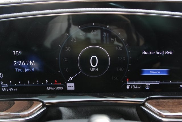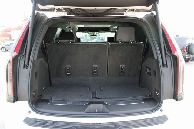 EQUIPPED WITH Preferred Equipment Group 1SH (Adaptive Cruise Control, AKG Studio Reference 36-Speaker Audio System, Automatic Seat Belt Tightening, Body-Color Door Handles, Door Lock & Latch Shields, Electronic Limited-Slip Differential, Enhanced Automatic Emergency Braking, Enhanced Automatic Parking Assist, Floor Console w/Covered Storage, Front Auxiliary 12-volt Power Outlet, Glass Breakage Sensor, Heated & Ventilated Driver & Front Passenger Seats, Hitch Guidance w/Hitch View, Integrated Trailer Brake Controller, Platinum Interior Trim, Power Lumbar Massage Driver Seat, Power Lumbar Massage Front Passenger Seat, Power Panoramic Tilt-Sliding Sunroof, Rear Camera Mirror, Rear Camera Mirror Washer, Rear Cross Traffic Alert, Rear Seat Entertainment System, Reconfigurable Full-Color Head-Up Display, Reverse Automatic Braking, Running Board Assist Steps, Smart Trailer Integration Indicator, Theft-Deterrent Alarm System, Trailer Side Blind Zone Alert, Vehicle Inclination Sensor, and Vehicle Interior Movement Sensor), Touring Package (Air Ride Adaptive Suspension, Illuminating Front & Rear Sill Plates, and Soft Closing Front & Rear Doors), AWD, Jet Black Leather, 16.9 Diagonal OLED Infotainment Screen, 2-Presets Memory For Driver Seat Adjuster, 3.23 Axle Ratio, 3rd row seats: split-bench, 4-Way Power Driver Lumbar Seat Adjuster, 4-Way Power Front Passenger Lumbar Seat Adjuster, 4-Wheel Disc Brakes, 8-Way Power Driver Seat Adjuster, 8-Way Power Front Passenger Seat Adjuster, A/V remote, ABS brakes, Adaptive suspension, Air Conditioning, Alloy wheels, AM/FM radio: SiriusXM with 360L, Apple CarPlay/Android Auto, Audio memory, Auto High-beam Headlights, Auto tilt-away steering wheel, Auto-dimming door mirrors, Auto-dimming Rear-View mirror, Automatic temperature control, Brake assist, Bumpers: body-color, Compass, Cooled Console w/Covered Storage, Delay-off headlights, Door auto-latch, Driver door bin, Driver vanity mirror, Dual front impact airbags, Dual front side impact airbags, Electronic Stability Control, Emergency communication system: OnStar and Cadillac connected services capable, Exterior Parking Camera Rear, Four wheel independent suspension, Front anti-roll bar, Front Bucket Seats, Front Center Armrest w/Storage, Front dual zone A/C, Front License Plate Bracket, Front reading lights, Full Semi-Aniline Leather Seat Trim, Fully automatic headlights, Garage door transmitter, Genuine wood console insert, Genuine wood dashboard insert, Genuine wood door panel insert, HD Radio, Headphones, Heads-Up Display, Heated door mirrors, Heated Driver & Front Passenger Seats, Heated front seats, Heated rear seats, Heated steering wheel, Illuminated entry, Leather steering wheel, Low tire pressure warning, Magnetic Ride Control Suspension, Memory seat, Navigation System, Night Vision, Not Equipped w/2nd Row Express-Up Window Control, Occupant sensing airbag, Outside temperature display, Overhead airbag, Overhead console, Panic alarm, Passenger door bin, Passenger vanity mirror, Power door mirrors, Power driver seat, Power Liftgate, Power moonroof, Power passenger seat, Power steering, Power windows, Power-Retractable Assist Steps, Radio data system, Radio: AM/FM w/Navigation, Rain sensing wipers, Rear air conditioning, Rear anti-roll bar, Rear audio controls, Rear reading lights, Rear window defroster, Rear window wiper, Remote keyless entry, Security system, SiriusXM w/360L, Speed control, Split folding rear seat, Spoiler, Steering wheel memory, Steering wheel mounted audio controls, Super Cruise, Tachometer, Teen Driver, Telescoping steering wheel, Tilt steering wheel, Traction control, Trip computer, Turn signal indicator mirrors, Variably intermittent wipers, Ventilated front seats, Voltmeter, Wheels: 22 12-Spoke Polished Alloy, and Wireless Apple CarPlay/