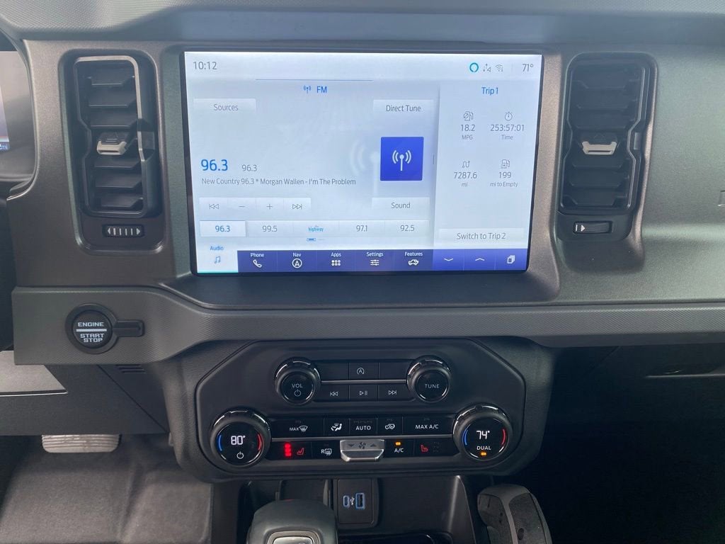 Equipped with Equipment Group 222A Mid Package (2-Door Intelligent Access w/Lock/Unlock, Ambient Footwell Lighting, Auto-Dimming Interior Rear-View Mirror, Connected Navigation, Dr & Pass Illuminated Sliding Visor Vanity Mirrors, Dual Smart Charging USB Ports, Dual-Zone Electronic Automatic Temperature Control, Front Row Heated Seats, Power Outlet - Back Side of Center Floor Console, and Rear Parking Sensors), Bronco Big Bend, 2D Sport Utility, 2.3L EcoBoost I-4, 10-Speed Automatic, 4WD, Gray Metallic, Dark Gray W/Black Onyx Vinyl, 4-Wheel Disc Brakes, 4.46 Axle Ratio, 7 Speakers, ABS brakes, Air Conditioning, Alloy wheels, AM/FM radio: SiriusXM with 360L, AM/FM Stereo, Auto High-Beam Headlamps, Auto High-beam Headlights, BLIS Blind Spot Information System, Brake assist, Compass, Convertible HardTop, Convertible roof lining, Delay-off headlights, Driver door bin, Driver vanity mirror, Dual front impact airbags, Dual front side impact airbags, Electronic Stability Control, Emergency communication system: 911 Assist, Exterior Parking Camera Rear, Front anti-roll bar, Front Bucket Seats, Front Center Armrest, Front fog lights, Front License Plate Bracket, Front reading lights, Front wheel independent suspension, Fully automatic headlights, Glass rear window, Heated door mirrors, Illuminated entry, Integrated roll-over protection, Lane-Keeping System, Leather Shift Knob, Low tire pressure warning, Marine Grade Vinyl Bucket Seats, Occupant sensing airbag, Outside temperature display, Overhead airbag, Overhead console, Panic alarm, Passenger door bin, Passenger vanity mirror, Power door mirrors, Power steering, Power windows, Pre-Collision Assist w/Automatic Emergency Braking, Radio data system, Rear window defroster, Rear window wiper, Rear-View Camera, Remote keyless entry, Security system, SiriusXM Radio w/360L, Speed control, Split folding rear seat, Steering wheel mounted audio controls, SYNC 4, Tachometer, Telescoping steering wheel, Tilt steering wheel, Traction control, Trip computer, Variably intermittent wipers, and Wheels: 17 Carbonized Gray-Painted Aluminum.