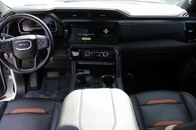 EQUIPPED WITH AT4 Preferred Package (Power Sliding Rear Window w/Rear Defogger and Universal Home Remote), AT4 Premium Package (Off-Road High Clearance Step (LPO)), Preferred Equipment Group 4SB (120-Volt Bed Mounted Power Outlet, 120-Volt Interior Power Outlet, 2 Charge/Data USB Ports Inside Center Console, 2 Type-C Charge-Only Rear USB Ports, 2 USB Ports, 220 Amp Alternator, Auto-Locking Rear Differential, Black Chrome Header & Grille Insert Bars, Color-Keyed Carpeting Floor Covering, Deep-Tinted Glass, Electric Rear-Window Defogger, Floor-Mounted Center Console, Front Prem Floor Liners w/Removable Carpet Insert, Front Rain-Sensing Wipers, GMC Connected Access Capable, HD Surround Vision, Heated 2nd Row Outboard Seats, Heated Driver & Front Outboard Passenger Seating, Heavy-Duty Air Filter, Hill Descent Control, Hitch View, In-Vehicle Trailering System App, Integrated Trailer Brake Controller, Keyless Open & Start, LED Cargo Area Lighting, OnStar & GMC Connected Services Capable, Perimeter Lighting, Power Door Locks, Power Front Passenger Windows w/Express Up/Down, Power Front Windows w/Driver Express Up/Down, Power Rake & Telescoping Steering Column, Power Rear Windows w/Express Down, Premium Bose 7-Speaker Sound System, Push Button Start, Rear Cross Traffic Braking, Rear Pedestrian Detection, Rear Prem Floor Liners w/Removable Carpet Insert, Rear Wheelhouse Liners, Red Recovery Hooks, Remote Vehicle Starter System, SiriusXM w/360L, Spray-On Pickup Bedliner w/AT4 Logo, Steering Wheel Audio Controls, Theft Deterrent System (Unauthorized Entry), Trailer Camera Provisions, Trailer Side Blind Zone Alert, Ultrasonic Front & Rear Park Assist, Ventilated Driver & Front Passenger Seats, Wi-Fi Hotspot Capable, and Wireless Charging), Technology Package (Bed View Camera, Multicolor 15 Diagonal Head-Up Display, and Rear Camera Mirror), Trailering Package (Hitch Guidance), 10-Speed Automatic, 4WD, Jet Black With Kalahari Accents Leather, 10-Way Power Driver Seat Adjuster w/Lumbar, 10-Way Power Passenger Seat Adjuster w/Lumbar, 170 Amp Alternator, 18 x 8.5 Machined Aluminum Wheels, 3.23 Rear Axle Ratio, 4-Wheel Disc Brakes, 7 Speakers, ABS brakes, Air Conditioning, Alloy wheels, AM/FM radio: SiriusXM with 360L, Apple CarPlay/Android Auto, Auto High-beam Headlights, Auto-dimming door mirrors, Auto-dimming Rear-View mirror, Automatic Emergency Braking, Automatic temperature control, Auxiliary External Transmission Oil Cooler, Block heater, Brake assist, Buckle to Drive, Bumpers: body-color, Compass, Delay-off headlights, Driver door bin, Driver Memory, Driver vanity mirror, Dual Active Exhaust, Dual front impact airbags, Dual front side impact airbags, Electronic Stability Control, External Engine Oil Cooling, Following Distance Indicator, Forward Collision Alert, Front anti-roll bar, Front Bucket Seats, Front Center Armrest, Front dual zone A/C, Front fog lights, Front License Plate Kit, Front Pedestrian Braking, Front reading lights, Front wheel independent suspension, Fully automatic headlights, Heated door mirrors, Heated front seats, Heated rear seats, Heated steering wheel, Illuminated entry, IntelliBeam Automatic High Beam On/Off, Lane Keep Assist w/Lane Departure Warning, Low tire pressure warning, Memory seat, Navigation System, Occupant sensing airbag, Off-Road Suspension, Outside temperature display, Overhead airbag, Overhead console, Panic alarm, Passenger door bin, Passenger vanity mirror, Perforated Front Leather Seat Trim, Power door mirrors, Power driver seat, Power passenger seat, Power steering, Power Sunroof, Power windows, Premium audio system: GMC Infotainment System, Radio data system, Radio: Premium GMC Infotainment Audio System, Rain sensing wipers, Rear reading lights, Rear seat center armrest, Rear step bumper, Rear window defroster, Remote keyless entry, Safe