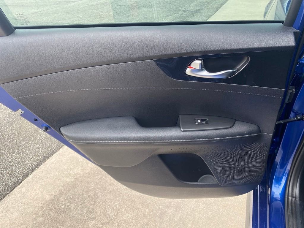 Equipped with GT-Line Premium Package (harman/kardon® Premium Audio, LED Interior Lighting, Power Sunroof, and Wireless Charging), Forte GT-Line, 4D Sedan, 2.0L I4 MPI, CVT, FWD, Deep Sea Blue, Black Cloth, 4-Wheel Disc Brakes, 6 Speakers, ABS brakes, Air Conditioning, Alloy wheels, AM/FM radio: SiriusXM, Apple CarPlay & Android Auto, Auto High-beam Headlights, Automatic temperature control, Brake assist, Bumpers: body-color, Cloth & SynTex Seat Trim, Delay-off headlights, Driver door bin, Driver vanity mirror, Dual front impact airbags, Dual front side impact airbags, Electronic Stability Control, Emergency communication system, Exterior Parking Camera Rear, Front anti-roll bar, Front Bucket Seats, Front Center Armrest, Front dual zone A/C, Front fog lights, Front reading lights, Front wheel independent suspension, Fully automatic headlights, Heated door mirrors, Illuminated entry, Leather Shift Knob, Leather steering wheel, Low tire pressure warning, Navigation System, Occupant sensing airbag, Outside temperature display, Overhead airbag, Overhead console, Panic alarm, Passenger door bin, Passenger vanity mirror, Power door mirrors, Power steering, Power windows, Radio data system, Radio: 10.25 Display Audio, Rear seat center armrest, Rear window defroster, Remote keyless entry, Security system, Speed control, Split folding rear seat, Spoiler, Sport steering wheel, Steering wheel mounted audio controls, Tachometer, Telescoping steering wheel, Tilt steering wheel, Traction control, Trip computer, Turn signal indicator mirrors, Variably intermittent wipers, and Wheels: 17 x 7.0 Alloy.